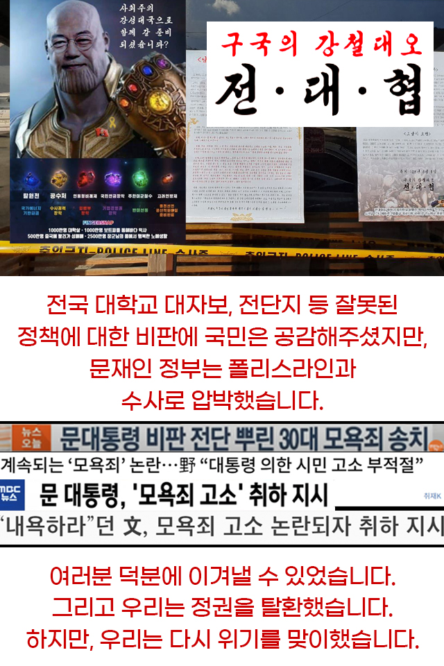 만약 우리가 ‘서서 죽느니 무릎 꿇고라도 살겠다’는 비겁한 생존을 또다시 이어간다면, 결국 우리는 모든 것을 잃게 될 것입니다.