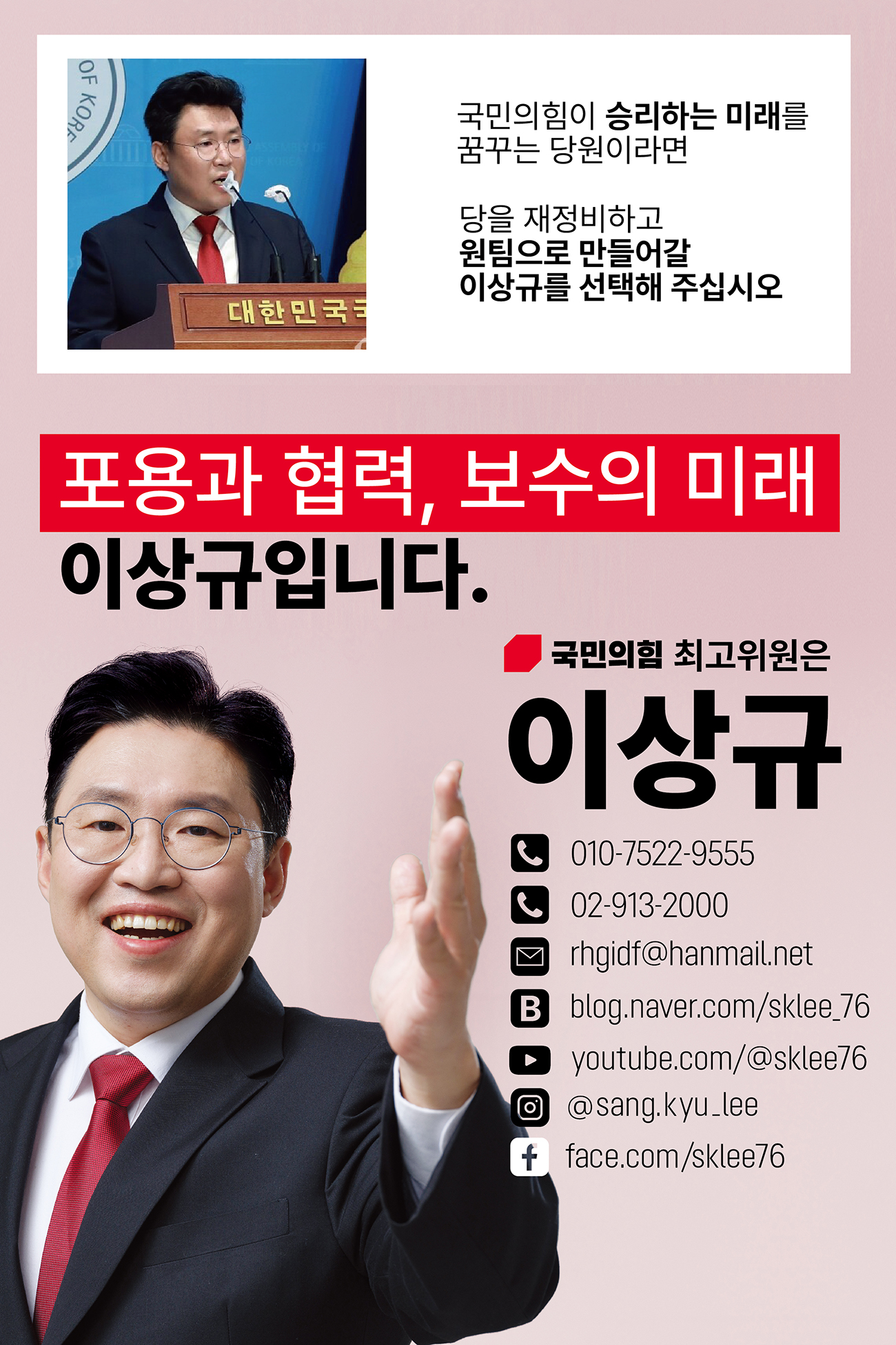 국민의힘은 모두의 내일을 함께 만들어가는 정당입니다. 자유민주주의를 수호하는 보수의 가치를 중시하고 대한민국의 정통성을 이어가는 자랑스러운 정당입니다. 저도 여러분과 같이 이런 국민의힘을 사랑합니다.
