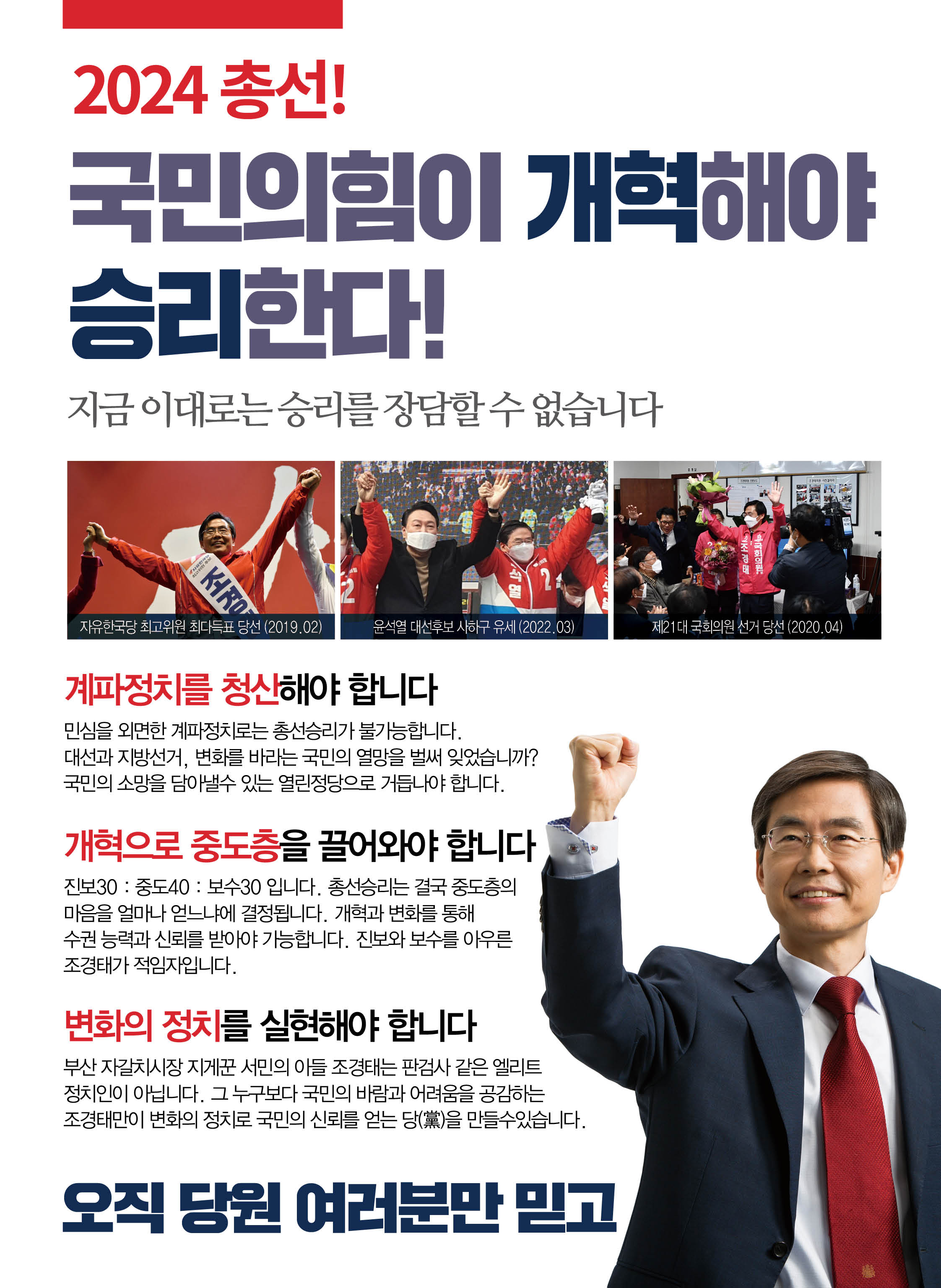 1년 2개월 앞으로 다가온 총선, 선거에서 이기는 방법을 아는 당대표가 필요합니다!