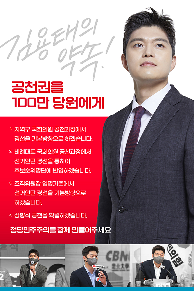 저는, 과거 권력의 입김에 따라 자행되던 공천갈등을 혁파하고, 상향식 공천을 통해 정당민주주의를 바로 세우기 위해 국민의힘 최고위원에 출마합니다.