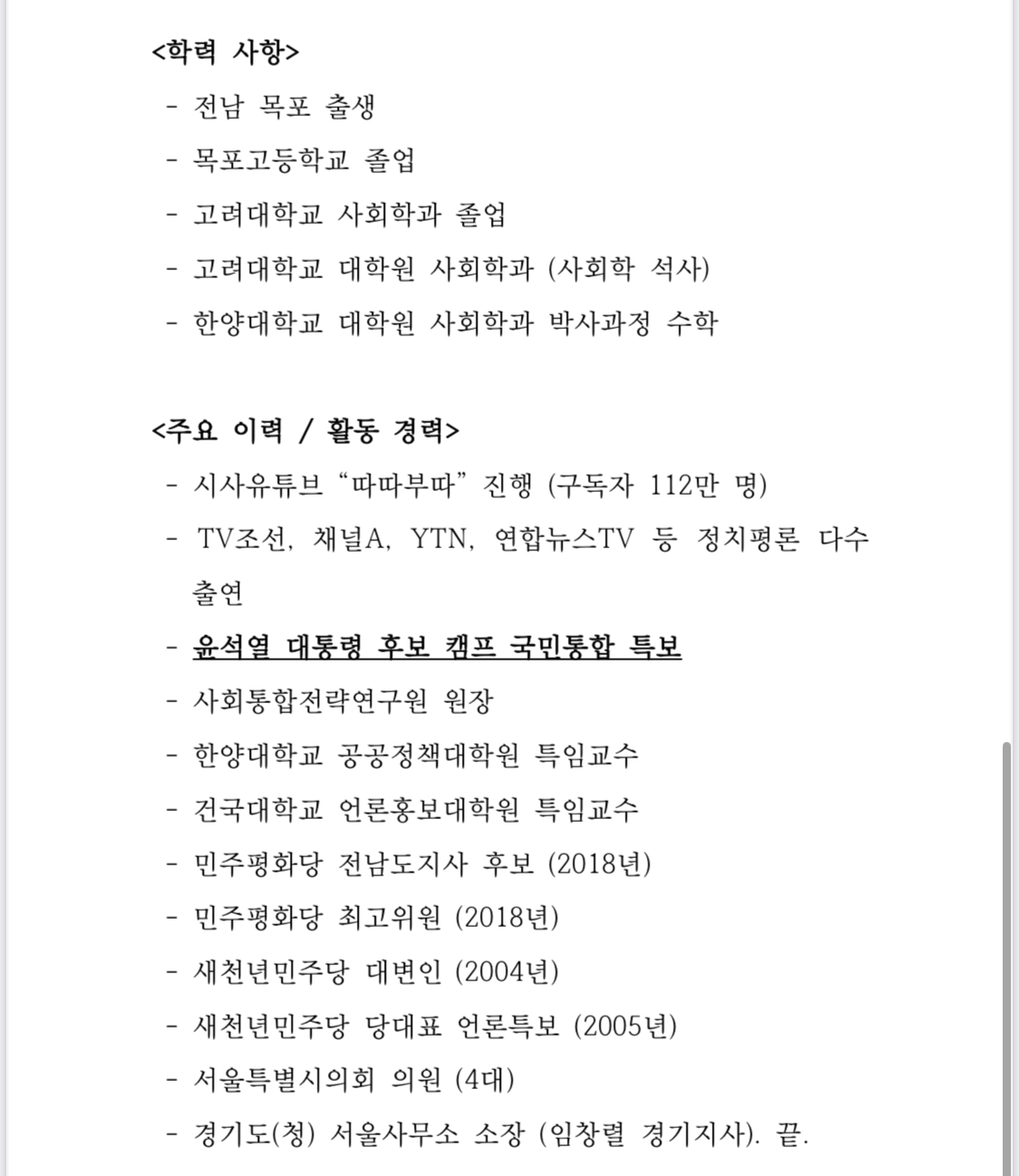 둘째, 22대 총선은 호남 출신인 제가 “호남보수” “강북우파”의 기수가 되어 지역주의를 극복하고 외연 확장을 통한 유의미한 승리를 이끌겠습니다.