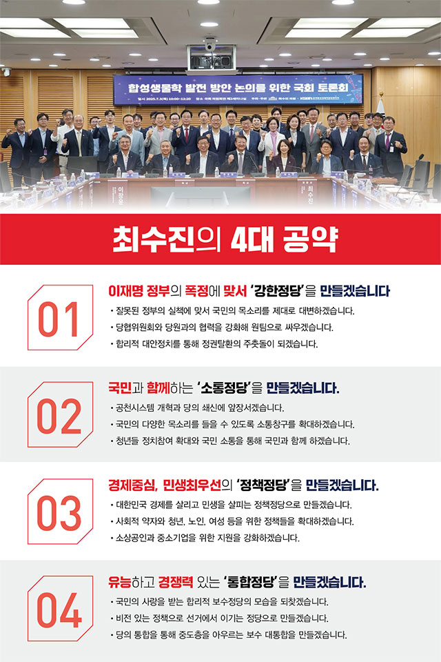 - 대한민국 경제를 살리고 민생을 살피는 정책정당으로 만들겠습니다.