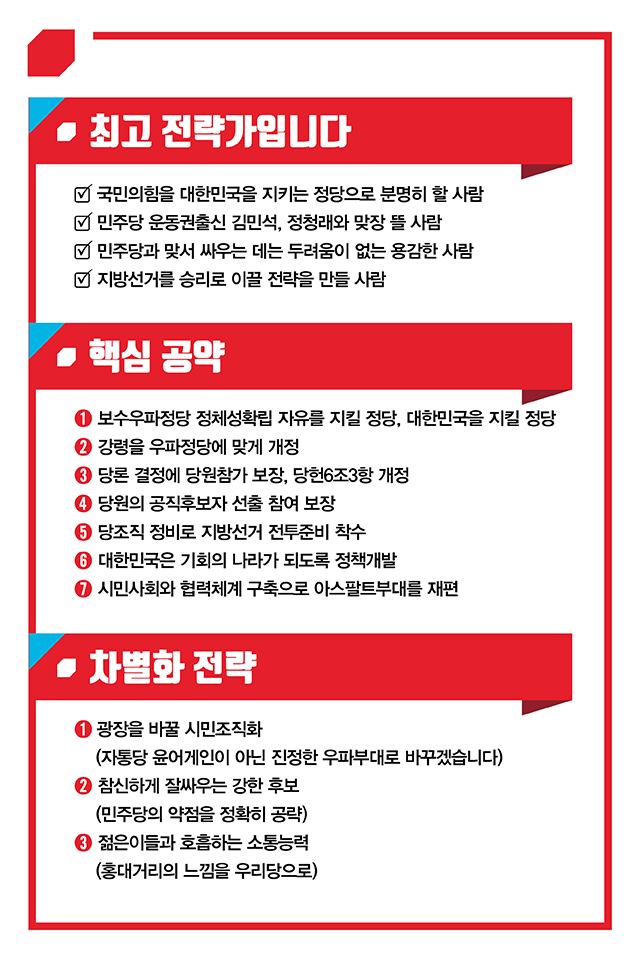 - 참신하게 잘 싸우는 강한 후보 (민주당의 약점을 정확히 공략)