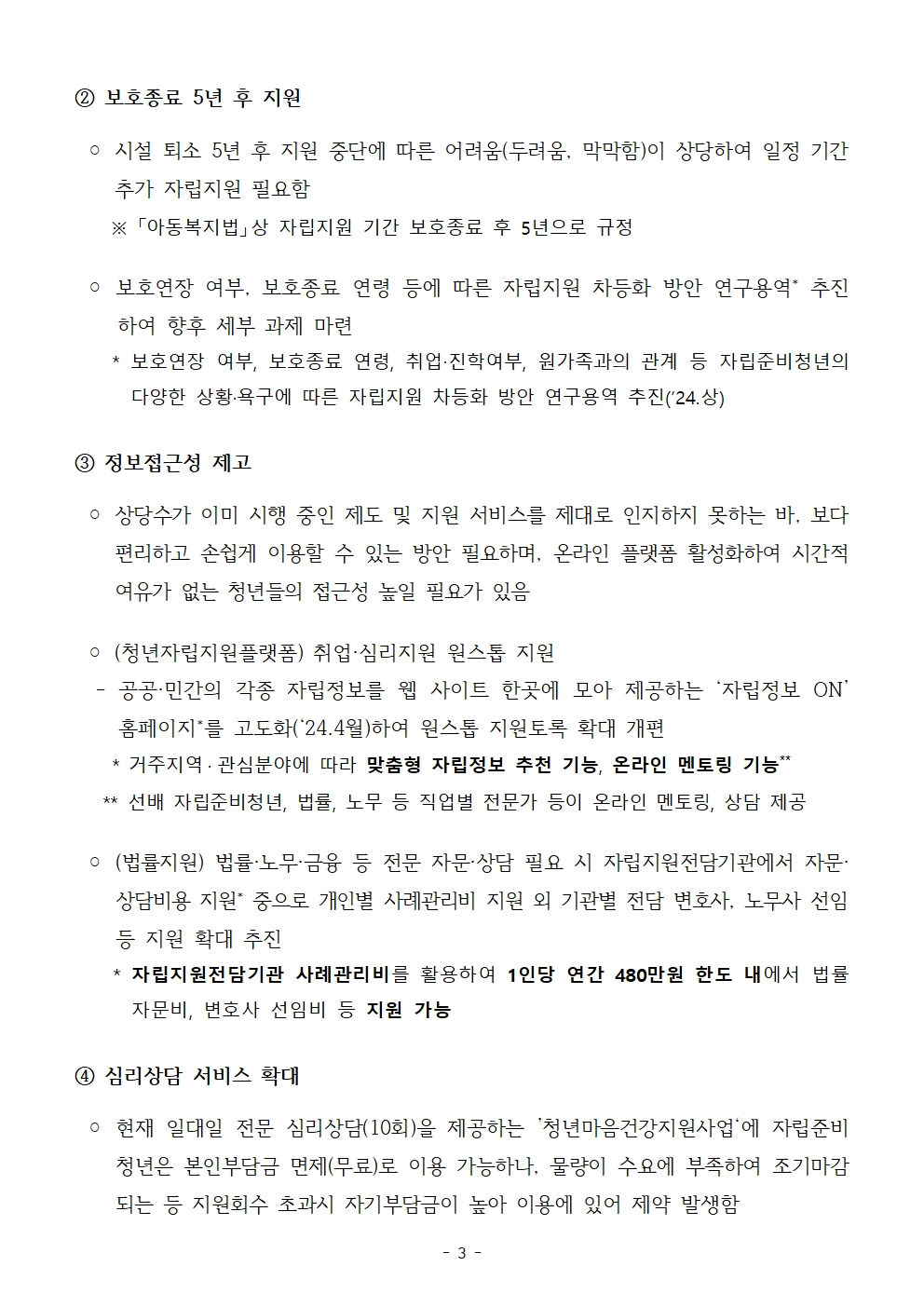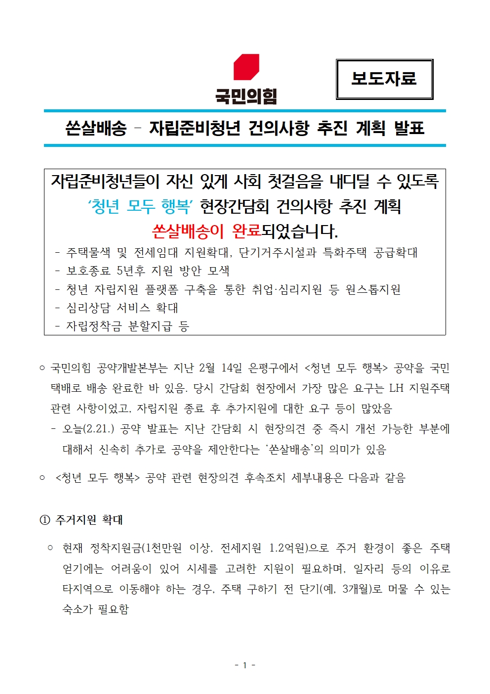 [보도자료] 쏜살배송 – 자립준비청년 건의사항 추진 계획 발표