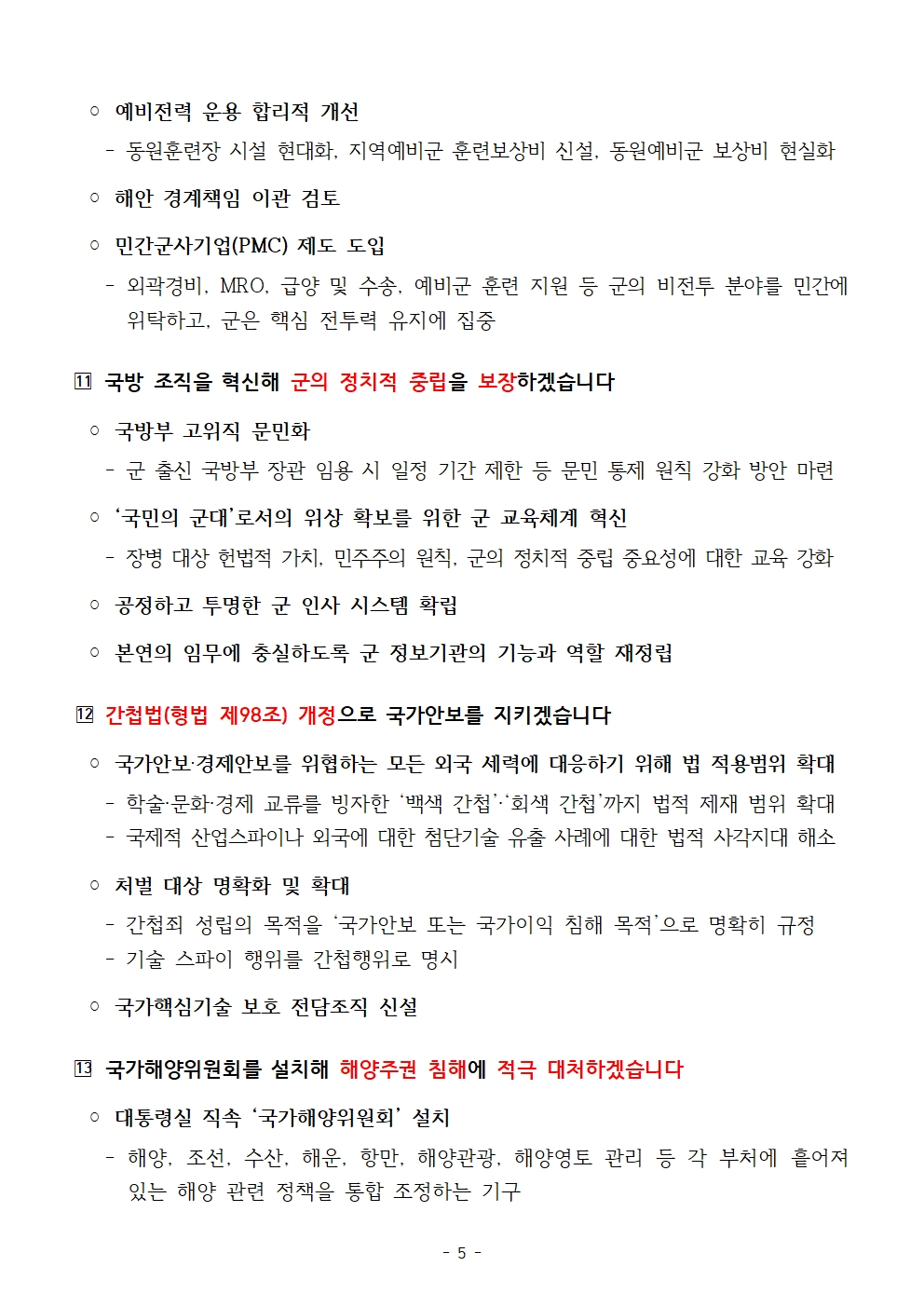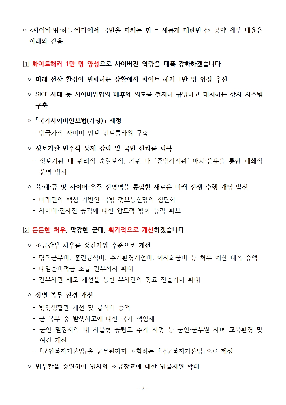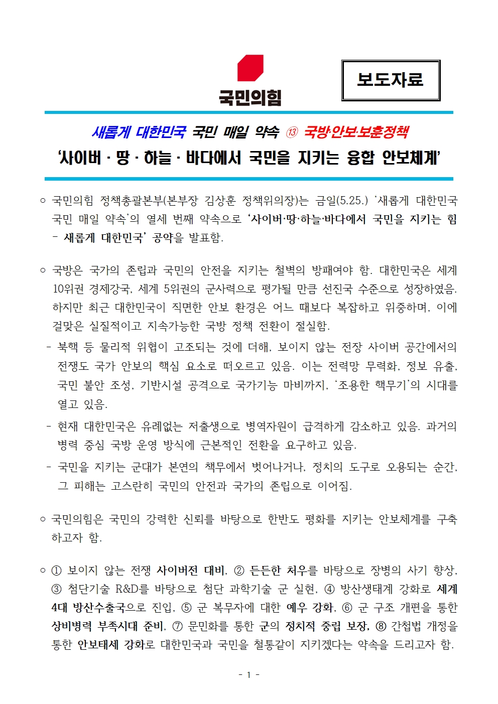 [보도자료] 국민의힘 '새롭게 대한민국 국민 매일 약속' 13. 국방정책 새롭게 대한민국 공약 발표