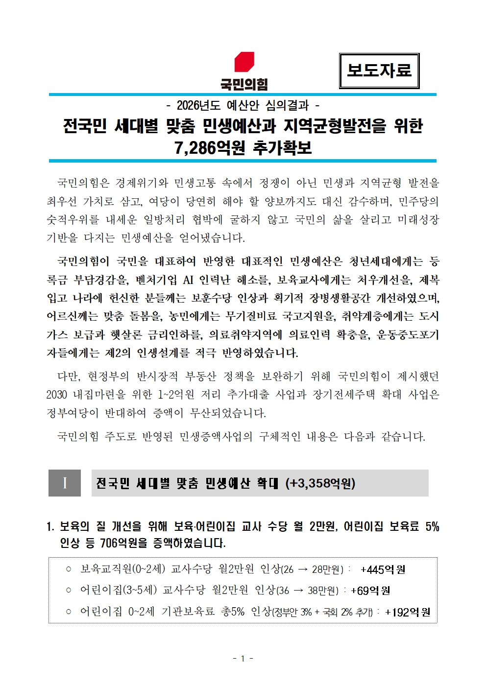 국민의힘 정책위 공식 논평 및 보도자료입니다.