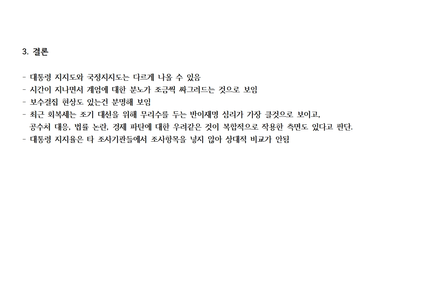 시간이 지나면서 계엄에 대한 분노가 조금씩 사그러드는 것으로 보임