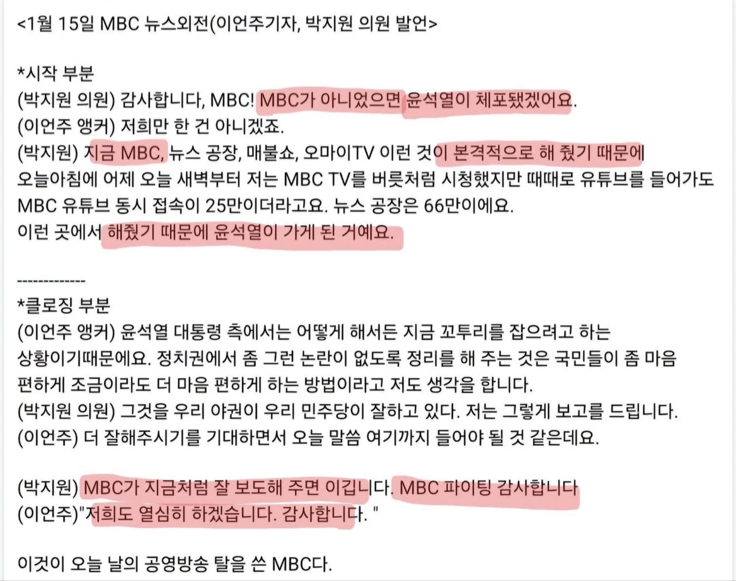MBC가 아니었으면 윤석열이 체포됐겠어요?