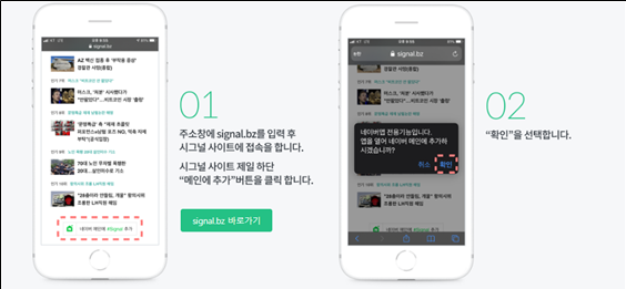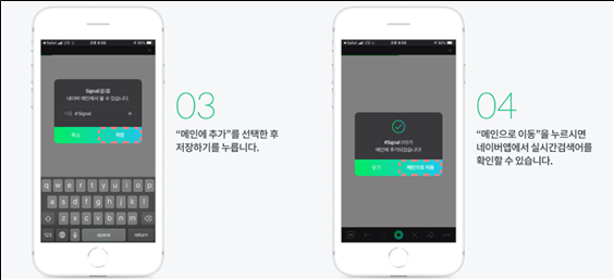 시그널 서비스 출시 직후 네이버는 자사 플랫폼과의 연동 기능을 제공하여 이용자는 시그널의 실검 서비스를 네이버 개인 페이지에 손쉽게 추가하는 방식이다.