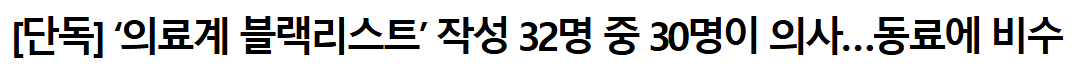 집단행동에 동참하지 않은 복귀 전공의들의 명단을 공개하고 비방한 이른바 ‘의료계 블랙리스트’와 관련해 경찰이 32명을 송치한 가운데, 이들 중 30명은 현직 의사인 것으로 확인됐다. 환자단체 등 시민들의 블랙리스트에 대한 비판이 크지만, 이를 유포한 전공의가 최근 구속된 데 대해 의료계에서는 되레 탄압이라며 거세게 반발하고 있다.