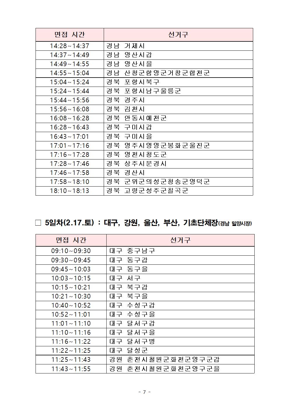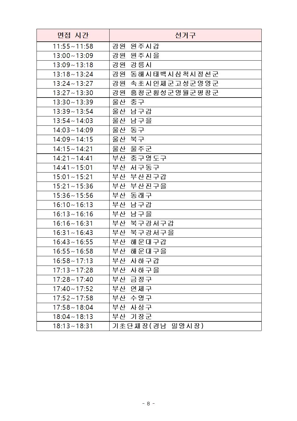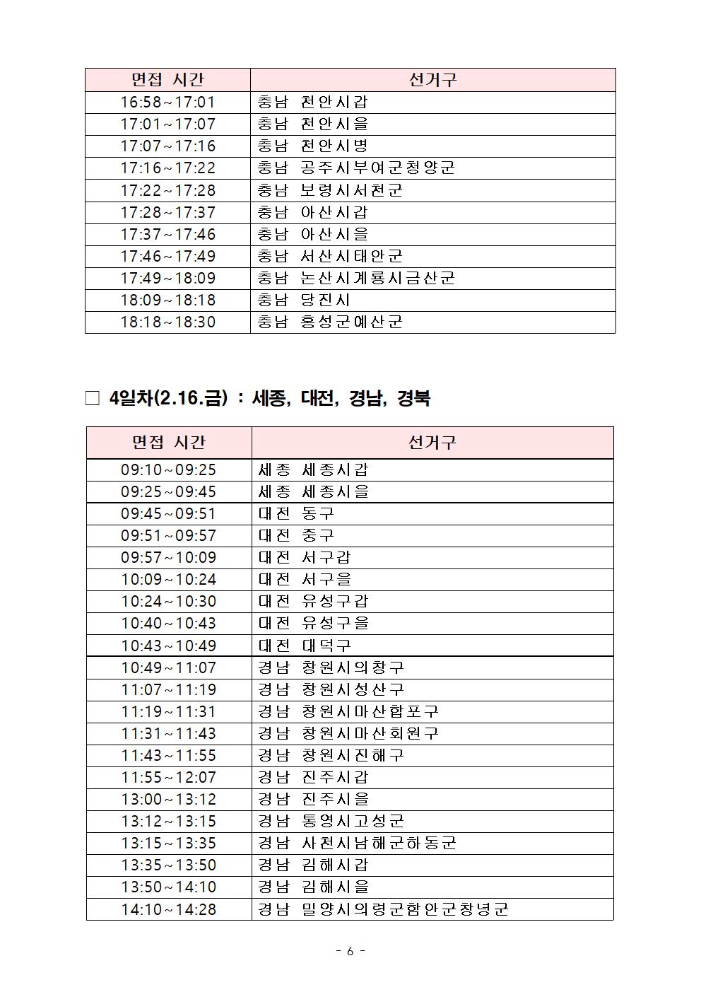 제22대 국회의원선거 지역구 및 4.10 재보궐선거 공천신청자 면접 일정