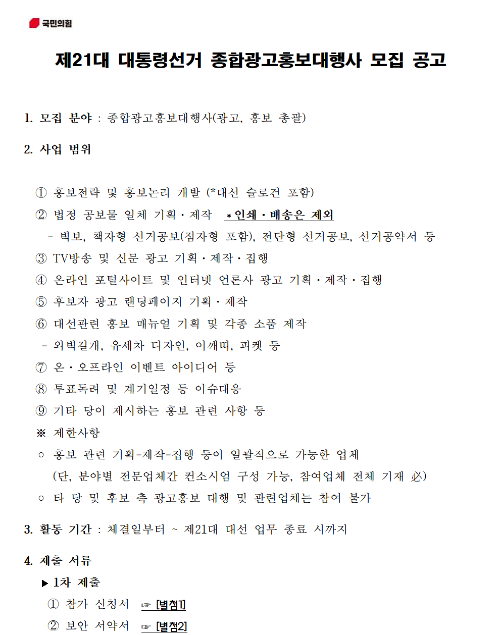 제21대 대통령선거 종합광고홍보대행사 모집 공고