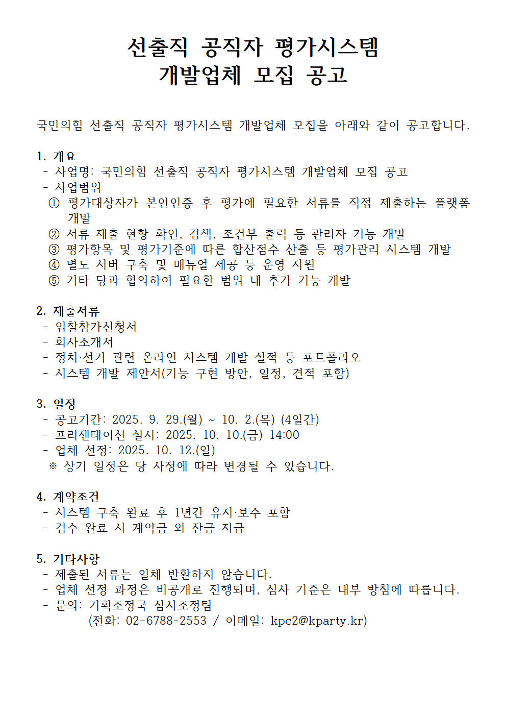 선출직 공직자 평가시스템 개발업체 모집 공고