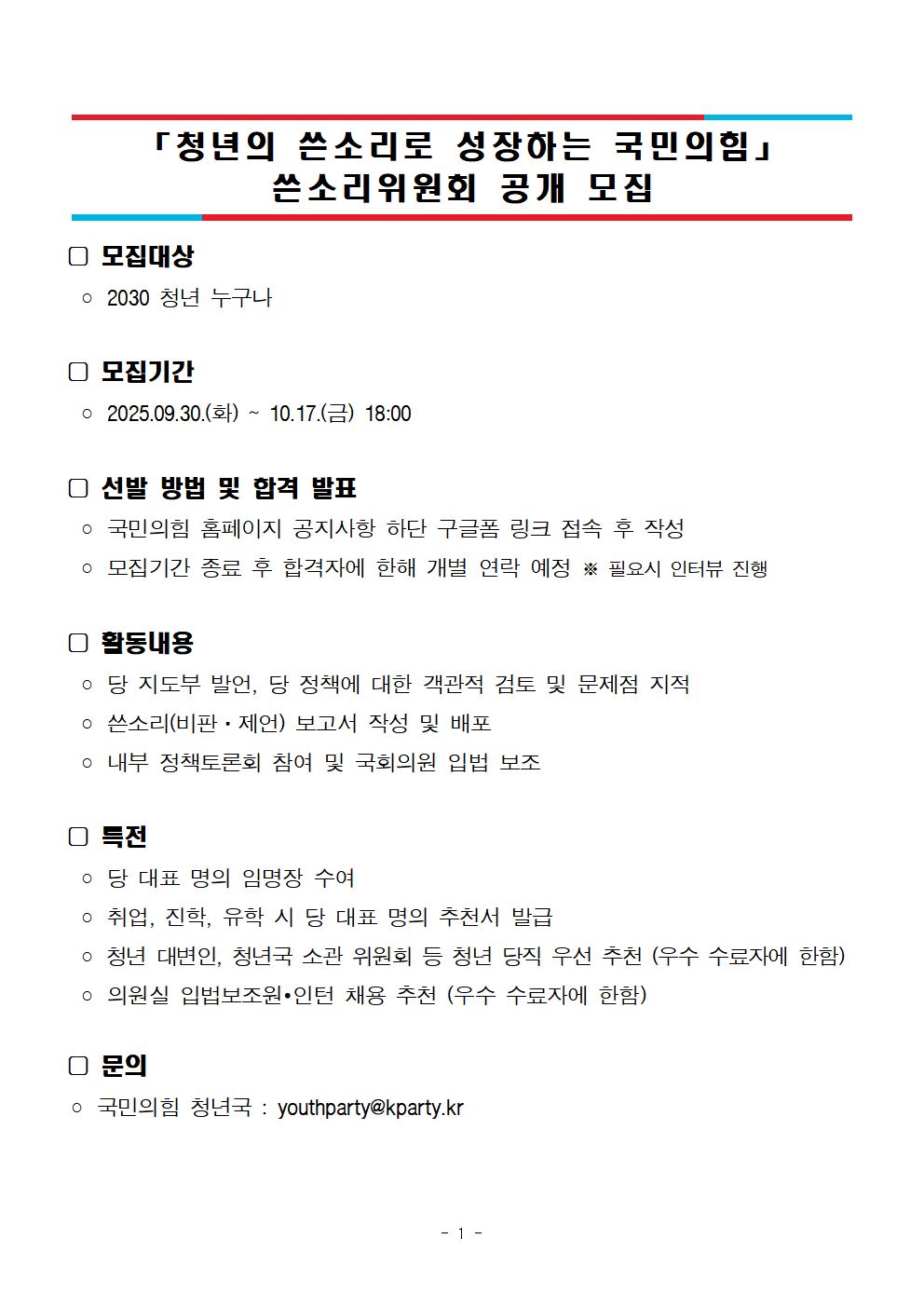 [청년의 쓴소리로 성장하는 국민의힘] 쓴소리위원회 공개 모집.hwp