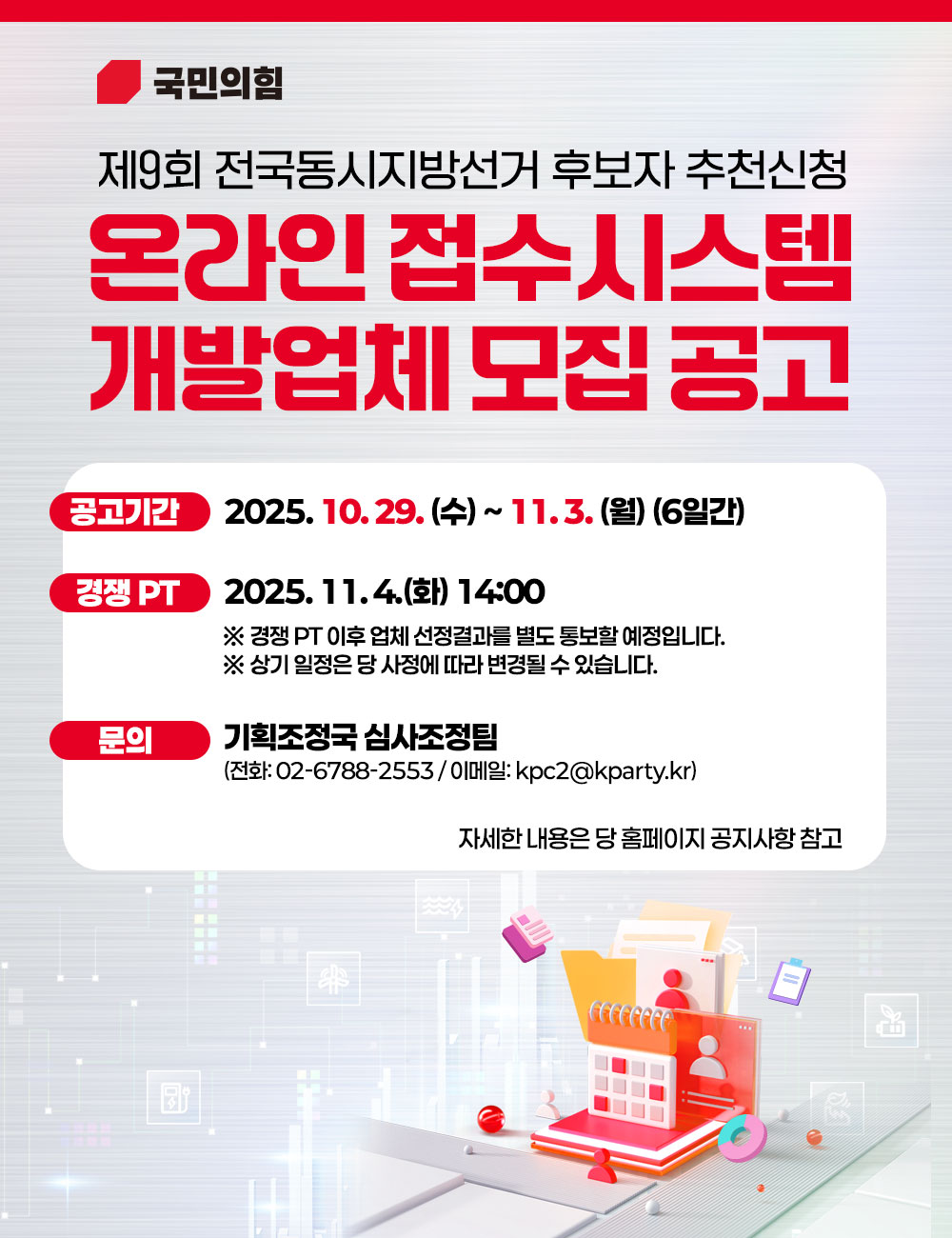 제9회 전국동시지방선거 후보자 추천신청 온라인 접수시스템 개발업체 모집 공고