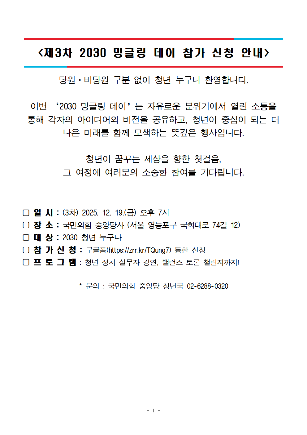<제3차 2030 밍글링 데이 참가 신청 안내>