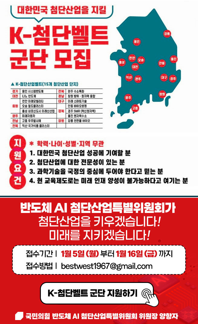 대한민국 첨단산업을 지킬 K-첨단벨트 군단 모집