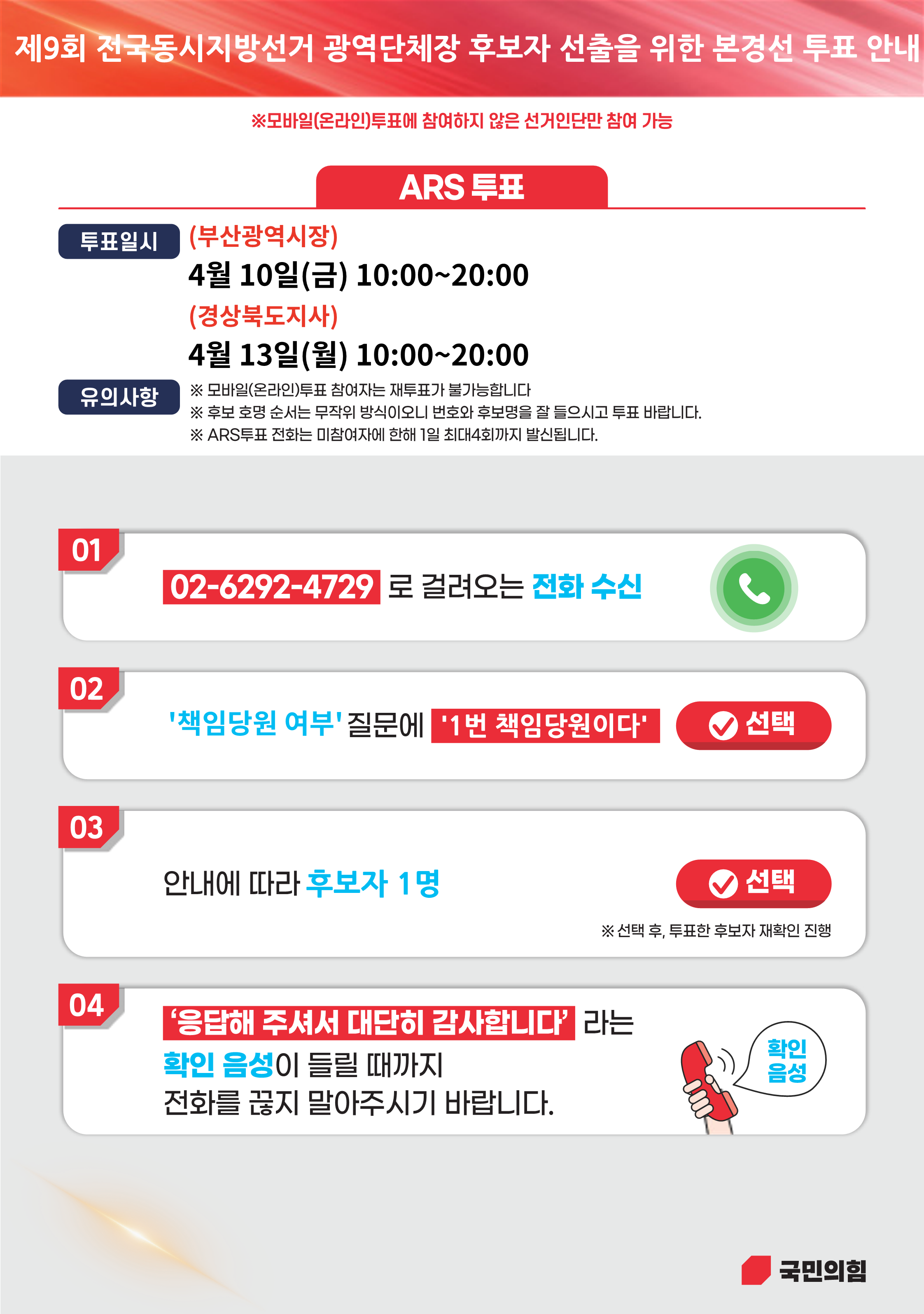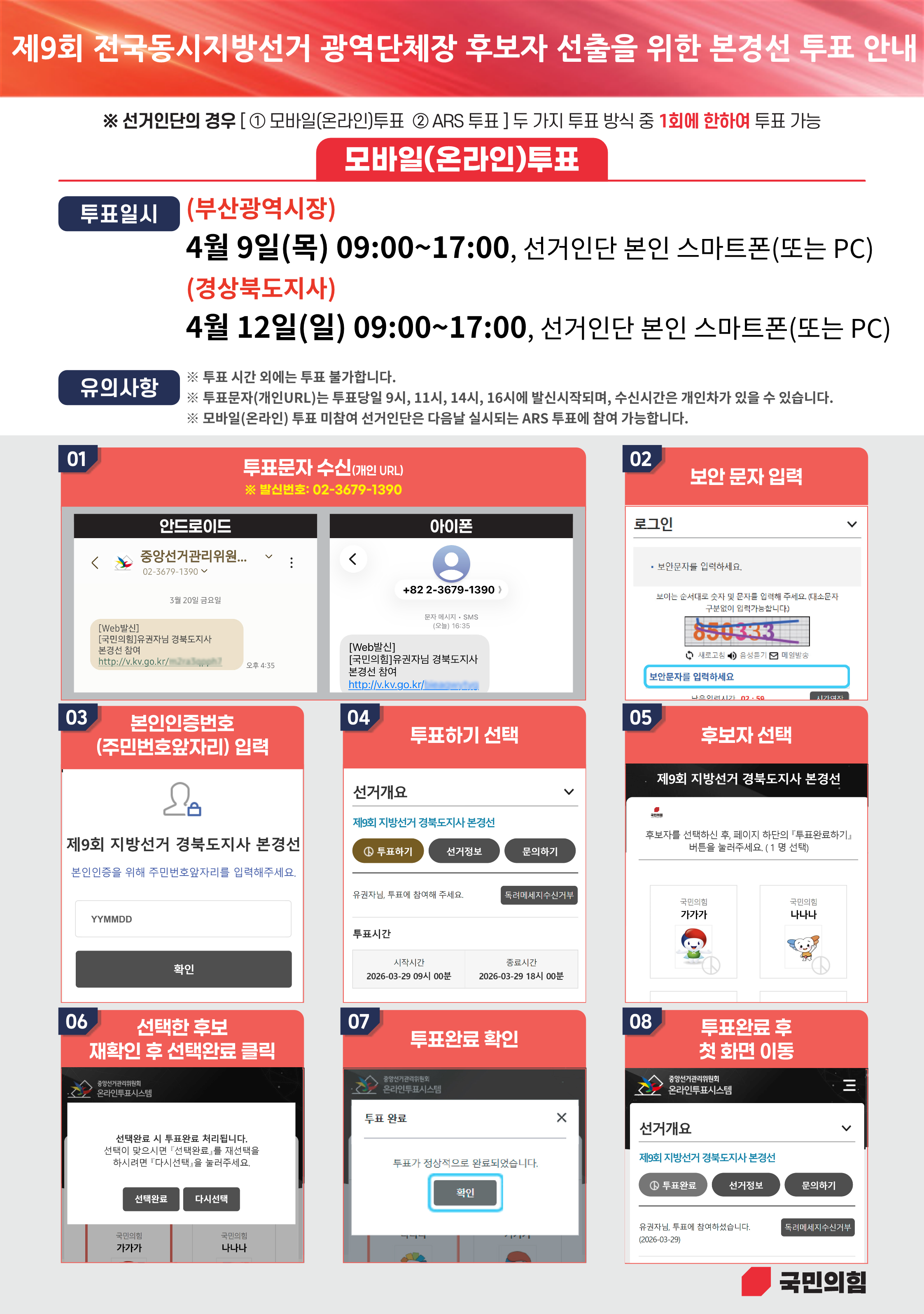 제9회 전국동시지방선거 광역단체장(부산, 경북) 후보자 선출을 위한 본경선 투표 안내