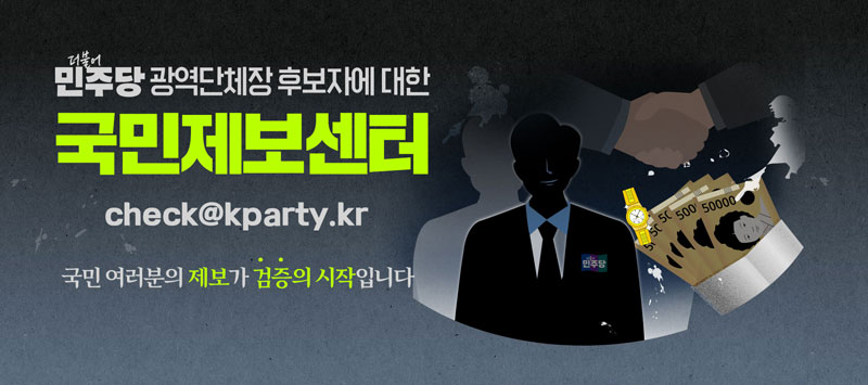 제9회 전국동시지방선거 대한민국 16개 시·도 더불어민주당 광역단체장 후보자의 부도덕, 불법, 불합리에 관련한 국민제보센터를 운영합니다.