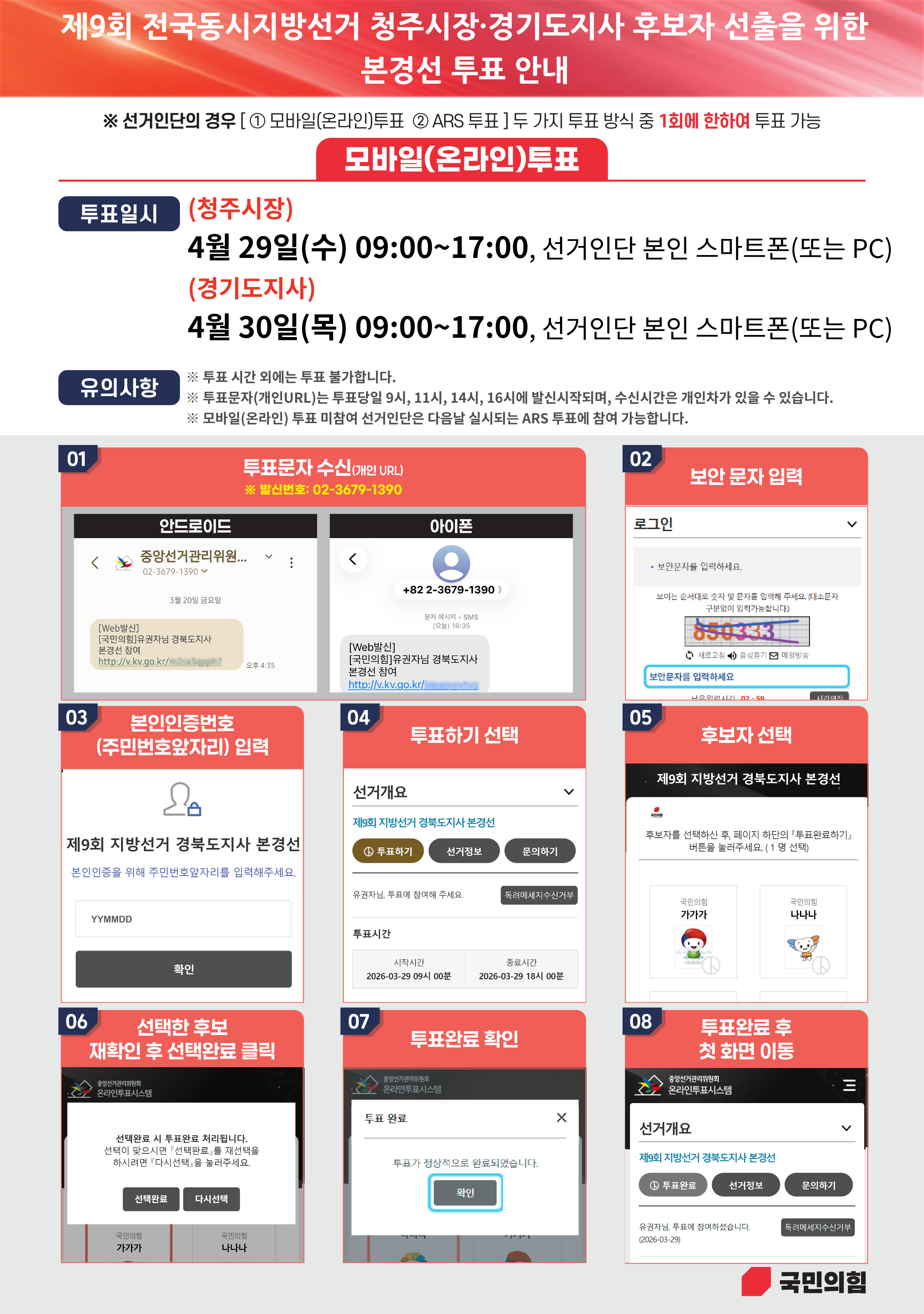 제9회 전국동시지방선거 청주시장·경기도지사 후보자 선출을 위한 본경선 투표 안내